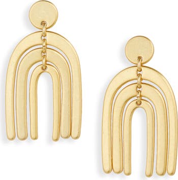 A bold statement in recycled brass, these earrings have a little extra movement to them thanks to the tiny rings between each arch.
