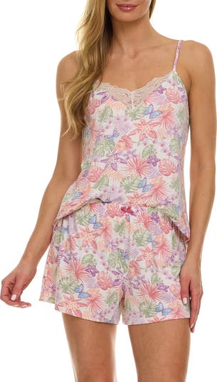 Sleep in dreamy luxury in this set of two soft camisole and short pajamas crafted from soft knit fabric.