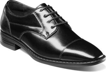A cap toe adds smart polish to a kid-approved leather derby fitted with a comfortable RedZone footbed and a grippy tread.
