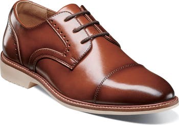 A cap toe adds smart polish to a kid-approved leather derby fitted with a comfortable RedZone footbed and a grippy tread.