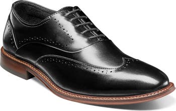 Broguing details define the style of a wingtip leather oxford that features an arch supporting footbed designed for all day wear.