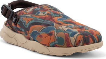 A nylon quilted upper bring water-resistant and stain-resistant comfort to this puffy clog grounded by a durable indoor-outdoor sole.