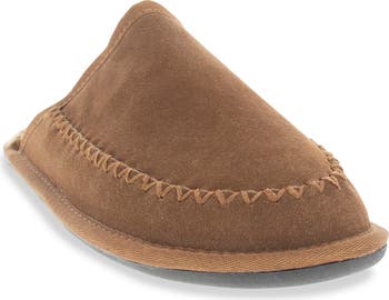A plush bed of soft fleece means a cozy experience in this finely stitched suede slipper that rests atop memory foam cushioning.