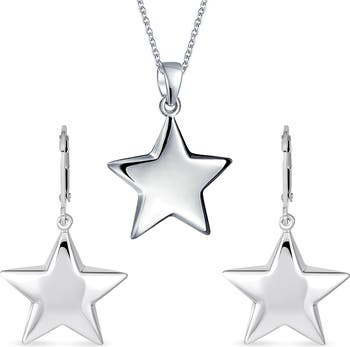 Beautiful in its simplicity, this set that includes star-shaped drop earrings and a matching puff necklace are made from stainless steel so they won't irritate sensitive skin.