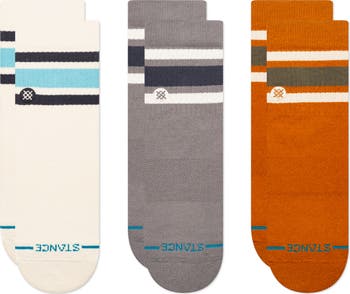 Stock up on essentials with this trio of quarter-length socks featuring striped patterns and logo embroidery.