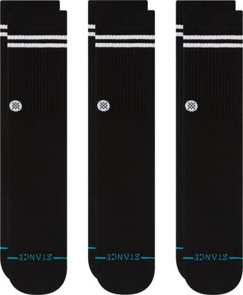 Sporty stripes and signature branding define these cotton-blend crew socks that are lightly brushed for softness.