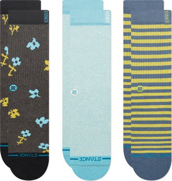 Stock up on essentials with this trio of crew socks featuring a mix of patterns and logo embroidery.