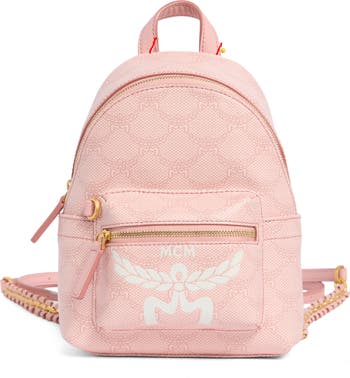 Bold logo detailing brands a blushing backpack that makes a standout accessory.