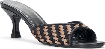 A squared-off toe and tapered heel balance a versatile slide sandal that will complement your polished looks.