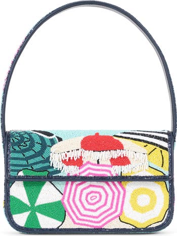 Beaded with a playful motif and edged with faux-leather piping, this shoulder bag brings a cheery, retro vibe to your look.