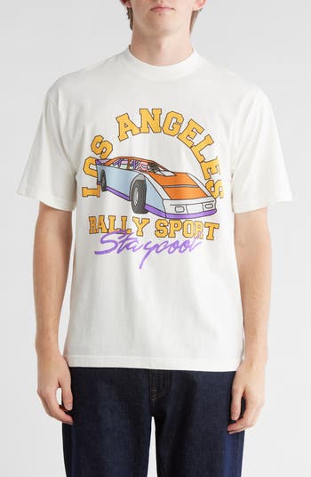 Speed in signature style wearing this heavyweight cotton jersey T-shirt featuring an LA rally sport graphic.