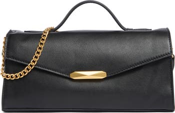 This oblong leather bag made with a top handle and a removable chain-and-leather strap is perfectly sized for your essentials.