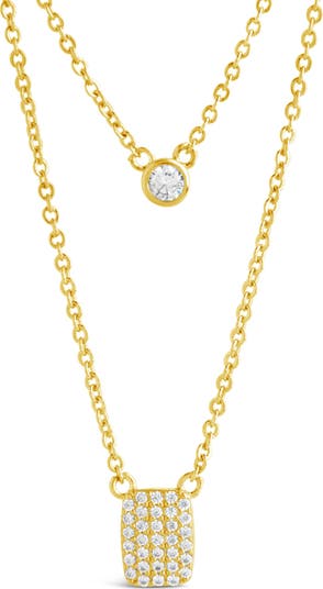 Dainty layers make this necklace a perfect addition to any look! It features a sparkling bezel cubic zirconia and a cubic zirconia-studded tag.