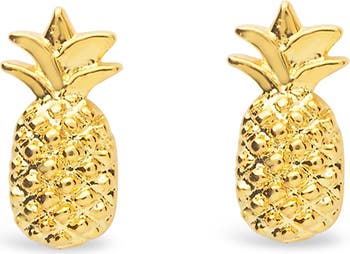 Perfect for any Psych-O or just a lover of pineapples; these stud earrings are super-cute and perfect for every day wear - 14K yellow gold plated sterling silver pineapple stud earrings - Post back - Approx. 6mm x 12mm - Imported