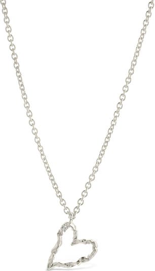 A delicate chain necklace suspends a heart-shaped pendant complete with a rich texture and singular cubic zirconia.