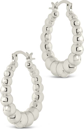 A bubbly texture catches the light on graduated hoop earrings plated in gleaming 14-karat yellow gold.