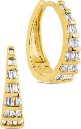 Baguette Cubic Zirconia Huggie Hoop Earrings