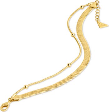Add a fine sparkle to your style with a distinct double-chain bracelet, featured in your choice of fine metal finishes.