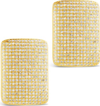 Pavé-set stones bring brilliant shine to these geometric stud earrings that add a charming flourish to any night-out look.