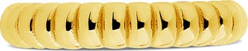 A textural bubble-band ring crafted from polished sterling silver or 14-karat yellow-gold plate offers elegant shine.