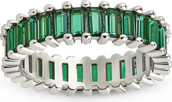 Prong-set round cubic zirconia stones bring a sparkling statement to an eternity ring that's perfect to wear alone or stacked.