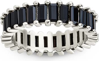 Prong-set round cubic zirconia stones bring a sparkling statement to an eternity ring that's perfect to wear alone or stacked.