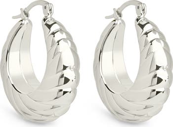 Give your look a little sparkle with these glossy huggie hoop earrings finished with a ribbed texture for added flair.