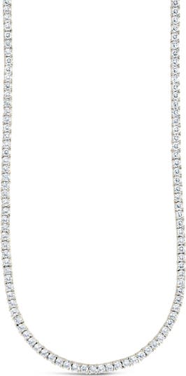Round cubic zirconia bring glamorous sparkle to an eye-catching tennis necklace finished in 14-karat gold or rhodium plate.