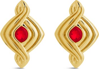 Round-cut cubic zirconia stones center these eye-catching drops in a diamond-shaped twisted design.