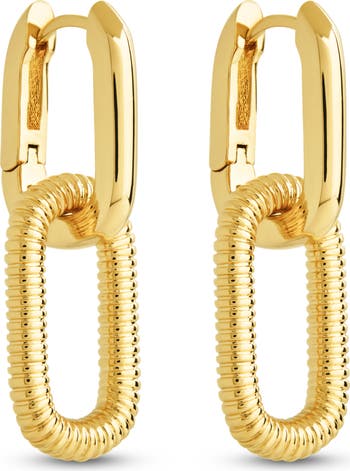 Accessorize in modern style wearing these gleaming drop earrings that feature a textured and solid link.