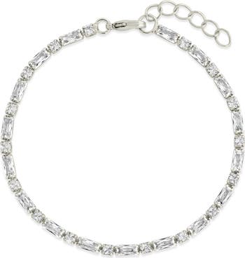 Perfect to stack or wear solo, this elegant tennis bracelet offers glamorous sparkle with mixed-cut cubic zirconia.