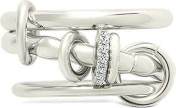 A trio of linked rings bring one-and-done ease to your stack, featuring bright polish and cubic zirconia accents.