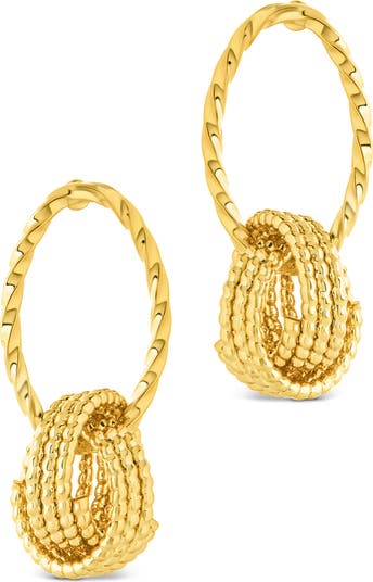 Rows of twisted wire interlink to create a statement double-drop dangle earring dipped in a gleaming finish.