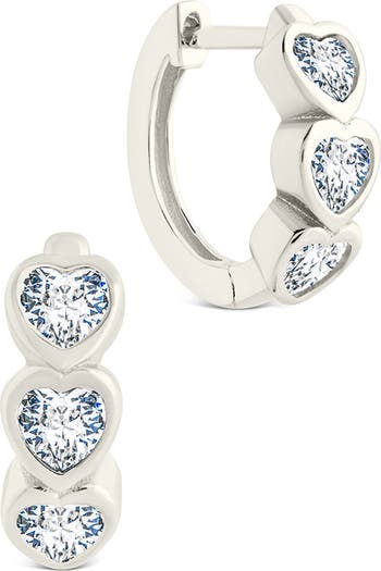 Add sweetness to your lobes with these polished huggie-hoop earrings defined by a shimmering trio of heart-shaped cubic zirconia.