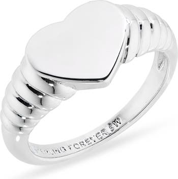 A rib-textured band a heart-shaped face delivers a sweet update to a traditional signet ring finessed in a 14-karat gold plate for a lasting shine.