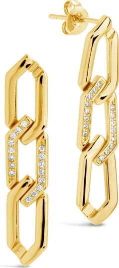 Round-cut cubic zirconia add extra shine to chain-drop earrings complete with bright polish.