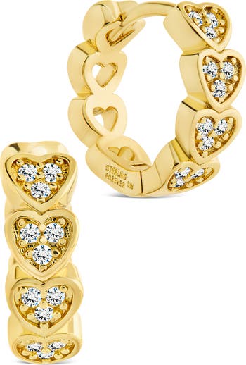 Bring lovely shine to your lobes with this endless heart huggies plated in warm 14-karat gold and encrusted with cubic zirconia stones.