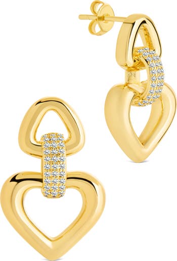 Add a bold sparkle to your style with door-knocker earrings distinct with cubic zirconia stones, featured in a fine14-karat gold plate finish.