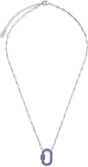 A delicate paper-clip chain brings modern style points to a polished necklace centered by a carabiner lock adorned with glitzy cubic zirconia.