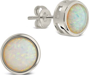 Created opals bring magical shimmer to round stud earrings finished in glossy 14-karat gold or rhodium plate.