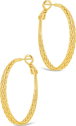 An intricately woven texture distinguishes a signature pair of hoop earrings complete with a high-shine finish to illuminate your lobes.