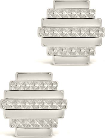 Diamond-cut rows alternate with polished bars for these petite stud earrings with a geometric silhouette.