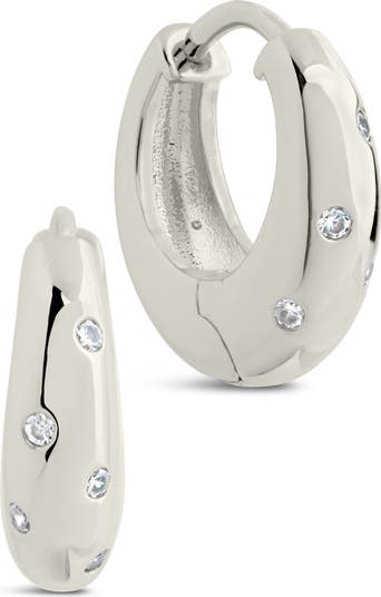 Brightly polished hoops are highlighted further by round-cut cubic zirconia that lend a dose of shine to any ensemble.