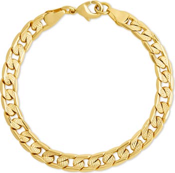 Add sparkle to your style with a traditional figaro chain bracelet distinct with textured links, available in a 14-karat gold finish.