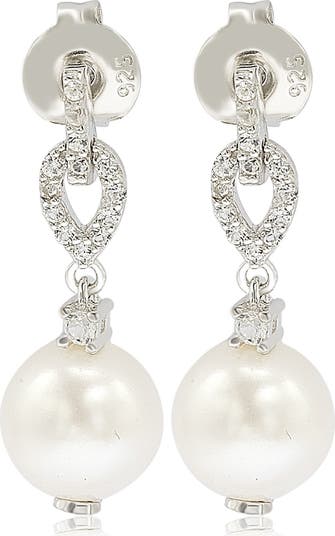 - Sterling silver freshwater pearl and created white sapphire dangle earrings