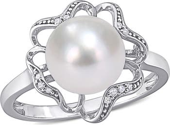 A gleaming pearl with diamond accent trim accented ring is the perfect pick to glam up your look.