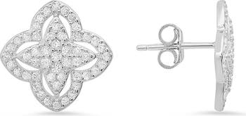 Four petal micropavé clovers style an effortlessly elegant stud earring.