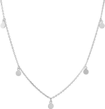 Round flat disc fringe catches light on this elegant necklace plated in gleaming 14-karat gold.