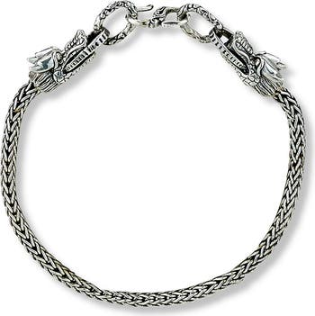 Sterling silver creates a unique double dragon head bracelet that is sure to make a statement.