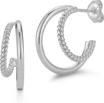 Smooth and textured hoops add intriguing dimension to these sterling silver hoop earrings.